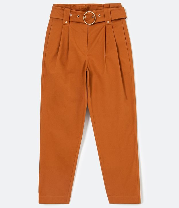 Calça Cenoura em Algodão com Cinto e Bolsos Laterais