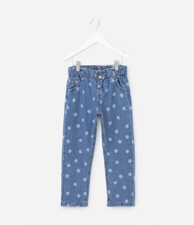 Calça Clochard Infantil Jeans com Estampa Florzinhas - Tam 1 a 5 Anos