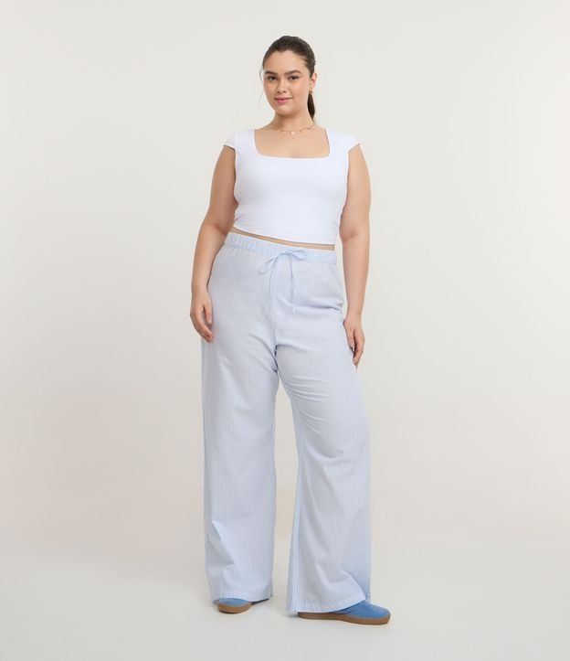 • Calça com cós Elástico Listrada Curve & Plus Size Azul 1