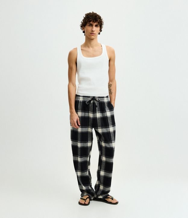 Calça de Pijama em Flanela Xadrez com Cordão no Cós Preto