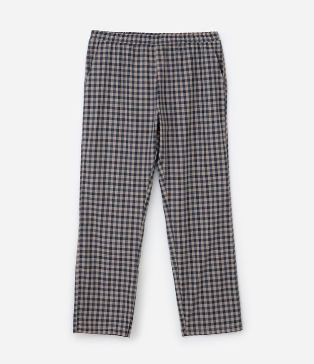 Calça de Pijama em Tricoline Xadrez Bege