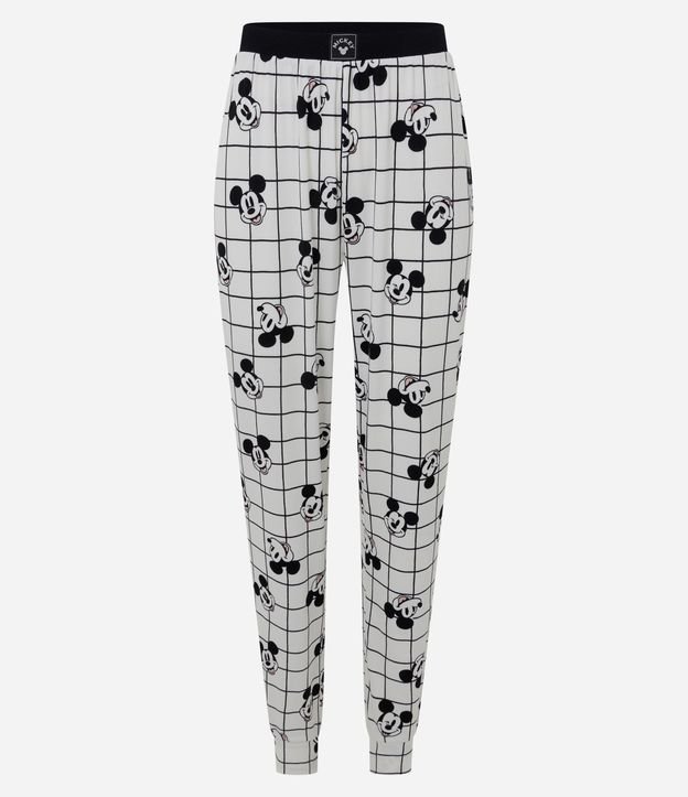 Calça de Pijama Jogger em Ribana com Estampa do Mickey Branco