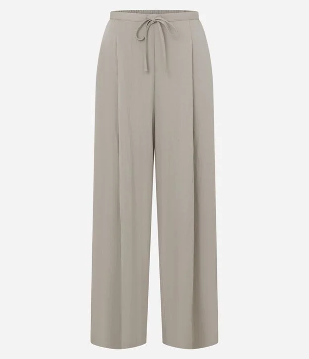 Calça de alfaiataria leve feminina, com acabamento amassadinho. Possui modelagem reta, caimento solto, cós com elástico na parte de trás e amarração frontal, oferecendo ajuste confortável e acabamento clean para compor looks versáteis do dia a dia.