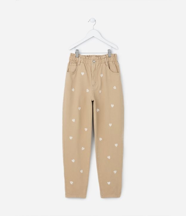 Calça em Sarja com Bordados de Corações - Tam 5 a 14 Anos