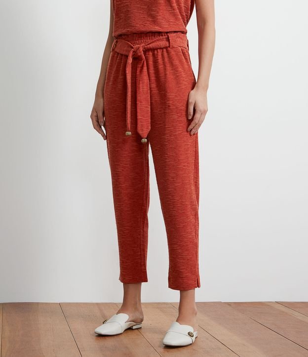 Calça em Viscose Texturizada com Cinto Faixa