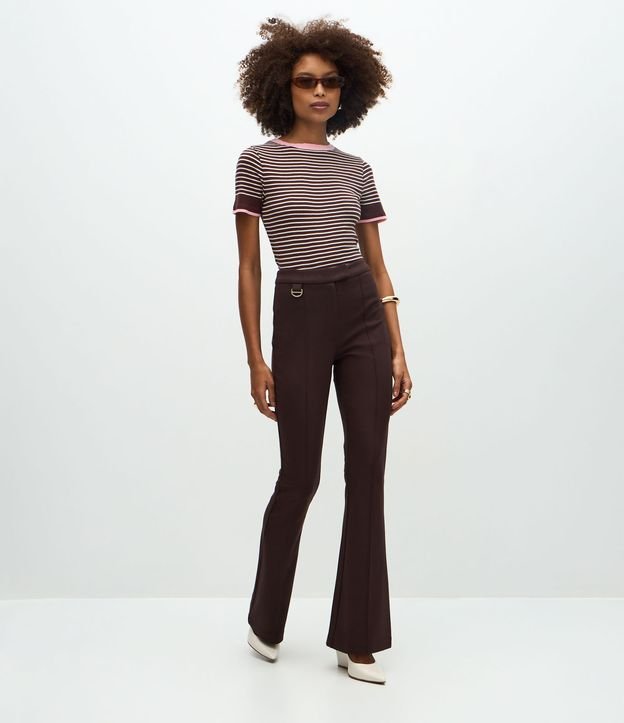 Calça Fit Flare em Ponto Roma com Fivelinha Marrom Escuro