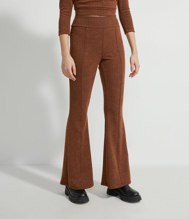Calça Flare em Jacquard com Cós Largo
