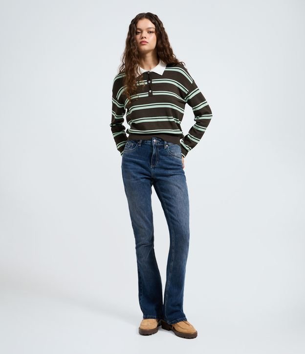 Calça Flare em Jeans com Cintura Média Five Pockets