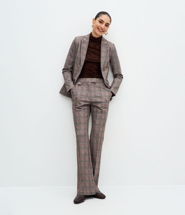 Calça Flare em Ponto Roma com Estampa Xadrez