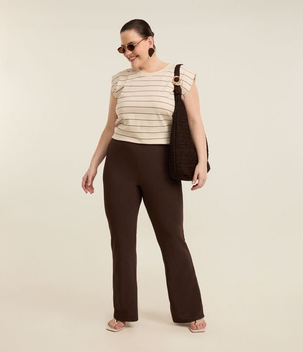 Calça Flare em Ribana Curve & Plus Size Marrom