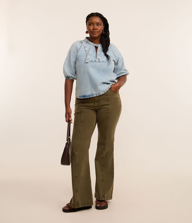 Calça Flare em Sarja com Cós Largo Curve & Plus Size