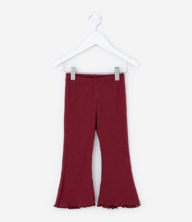 Calça Flare Infantil Canelada com Frufru na Barra - Tam 1 a 6 Anos Vermelho