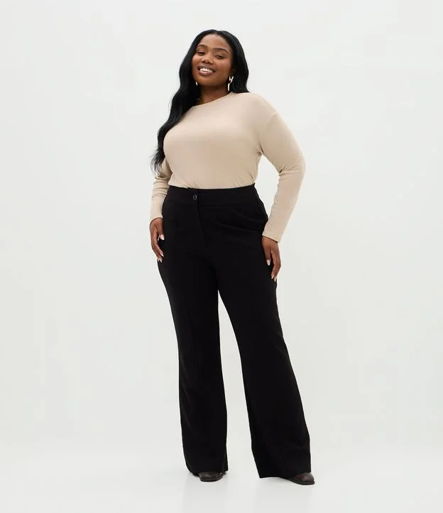 Calça Flare Ponto Roma com Nervura Curve & Plus Size Preto