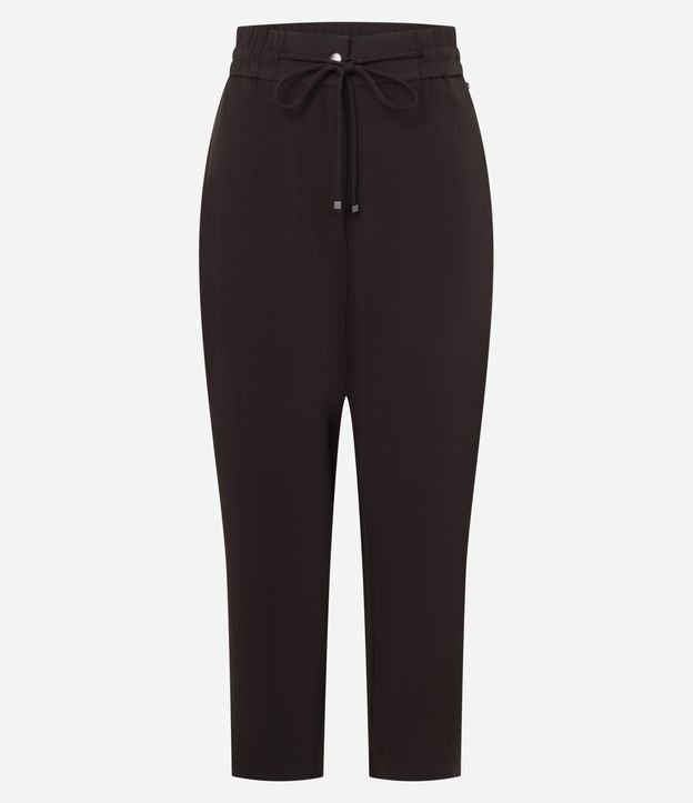 Calça Fluida em Crepe com Cós Elástico e Amarração Marrom