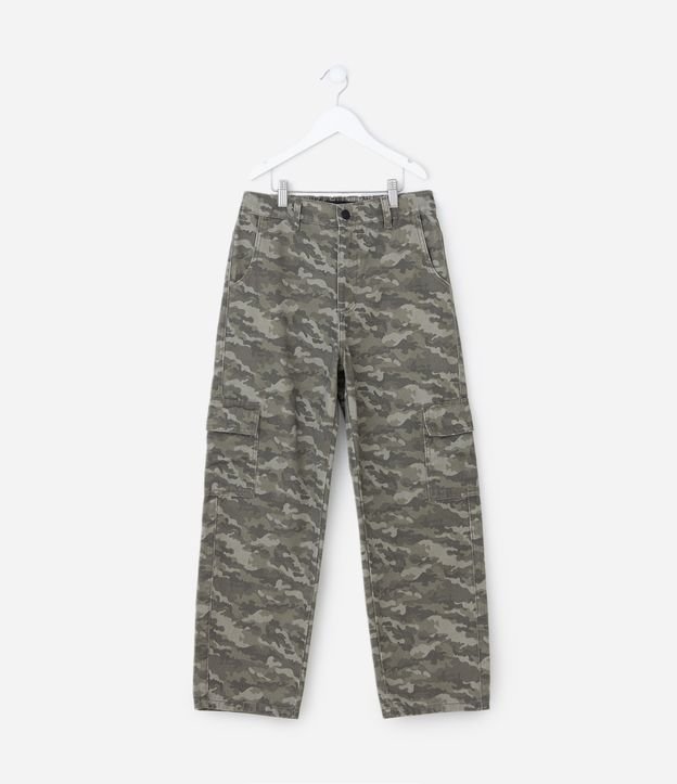 • Calça Infantil Baggy com Estampa Camuflada – Tam 7 a 16 Anos Verde militar 6