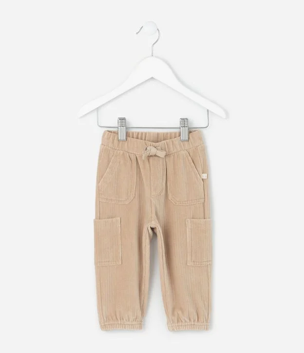 Calça Infantil Canelado com Bolsos Cargo – Tam 0 a 24 Meses Bege Claro
