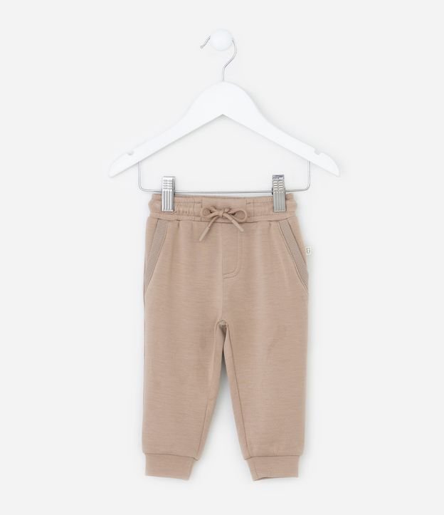 Calça Infantil com Cordão Ajustável - Tam RN a 18 Meses Bege