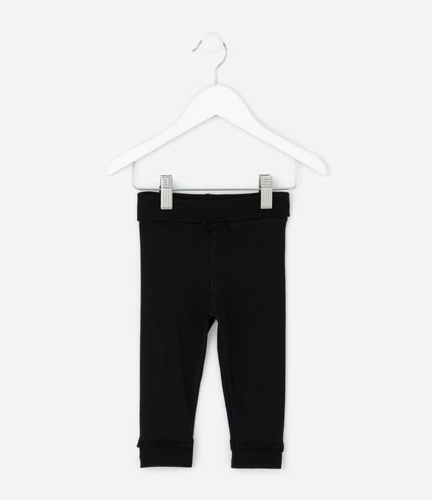 Calça Infantil com Cós Virado e Laço Aplicado - Tam RN a 18 Meses Preto