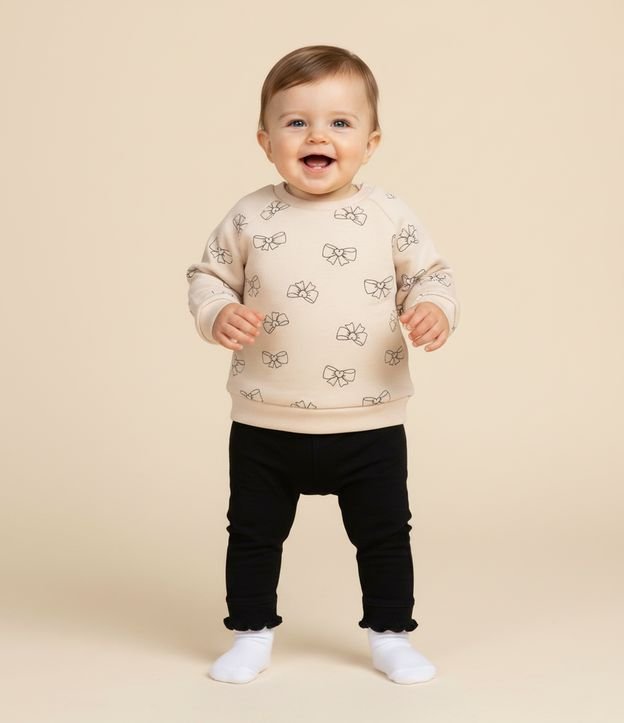 Calça Infantil com Cós Virado e Laço Aplicado - Tam RN a 18 Meses Preto