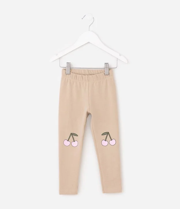 Calça Infantil com Estampa de Cereja – Tam 1 a 6 Anos Bege