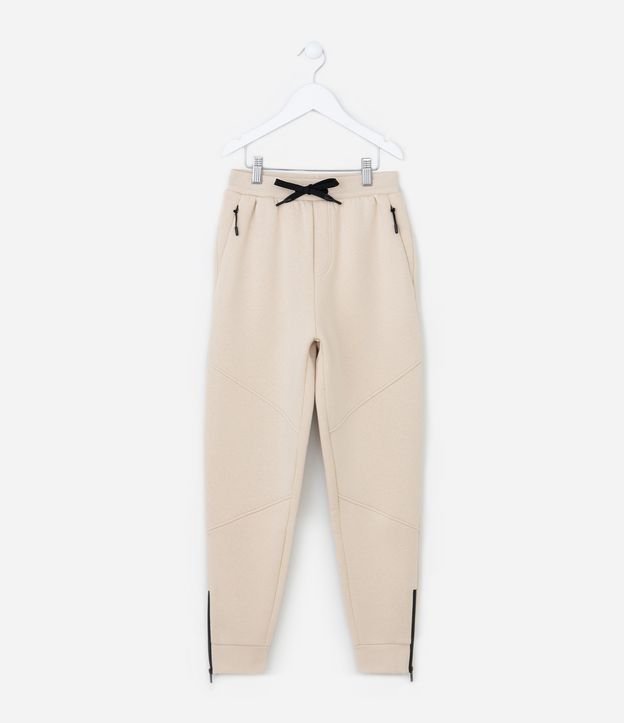 Calça Infantil com Recortes Zíper na Barra - Tam 5 a 14 Anos Bege
