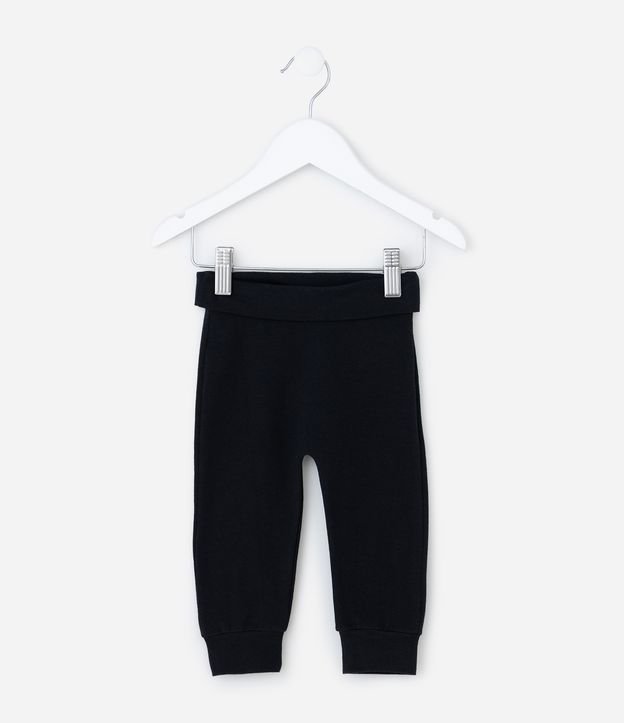 Calça infantil para bebês, confeccionada em malha cotton e sem estampa. Possui cós dobrado e punhos ajustados.