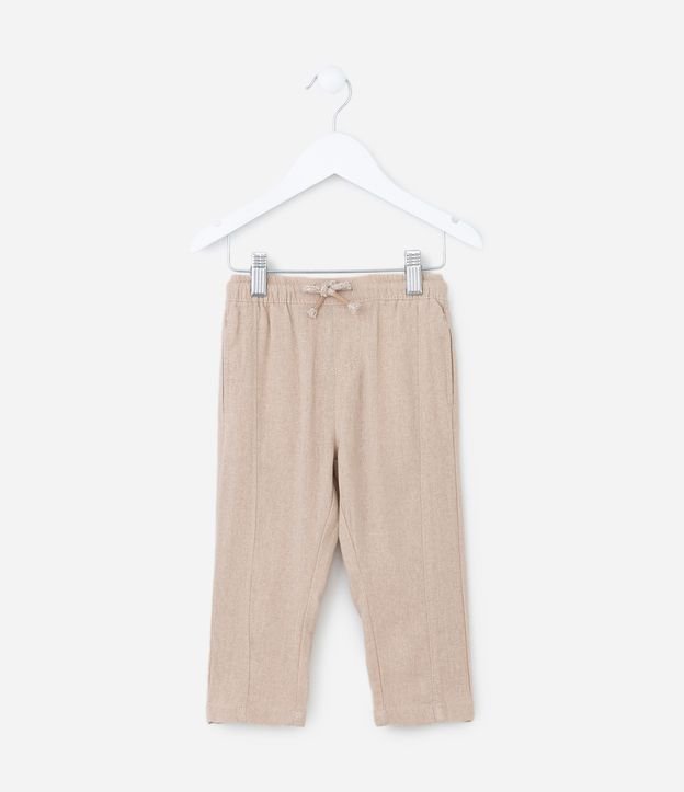 Calça Infantil em Linho com Cós Elástico e Cordinha - Tam 1 a 5 Anos Bege