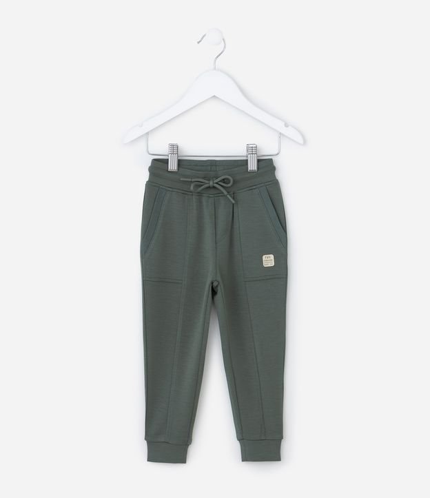 Calça Infantil em Modal com Recortes e Bolsos - Tam 1 a 6 Anos Verde Escuro