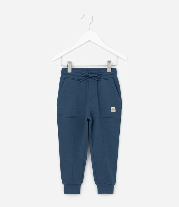 Calça Infantil em Modal com Recortes e Bolsos - Tam 1 a 6 Anos Azul Escuro