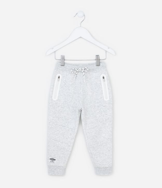 Calça Infantil em Moletom com Lettering Embossed – Tam 1 a 5/6 Anos Cinza Claro