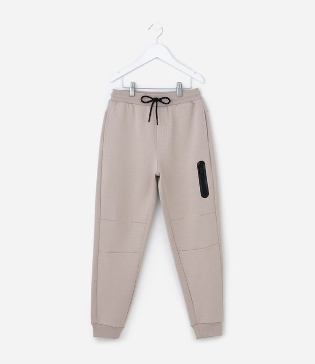 Calça Infantil em Moletom e Bolso com Zíper - Tam 5 a 14 Anos Bege