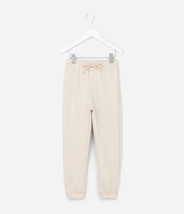 Calça Infantil em Piquet com Recortes - Tam 1 a 6 Anos Bege