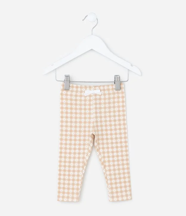 Calça Infantil em Ribana com Estampa Vichy e Laço – Tam RN a 18 Meses Bege