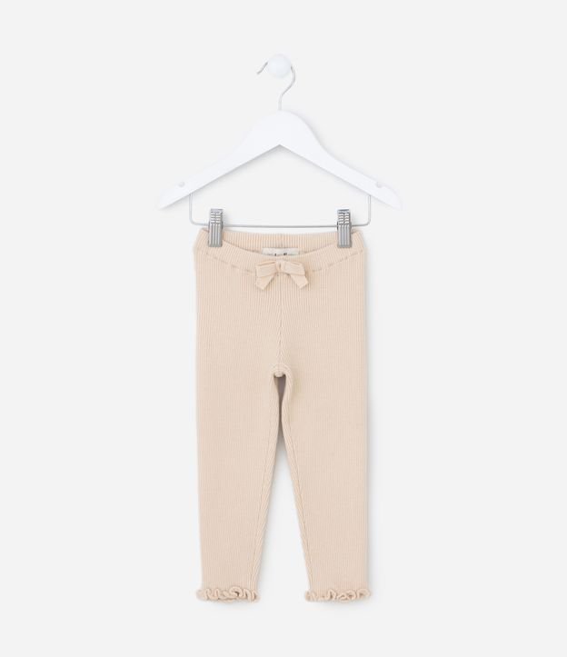 Calça infantil confeccionada em ribana, com elástico no cós, lacinho e frufru na barra.