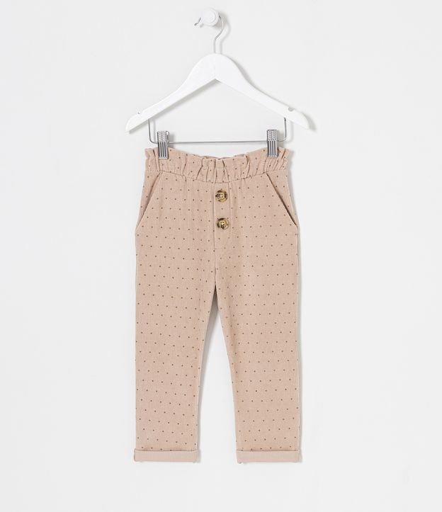 Calça Infantil em Veludo com Estampa Poá e Detalhes de Babadinhos - Tam 1 a 5 anos