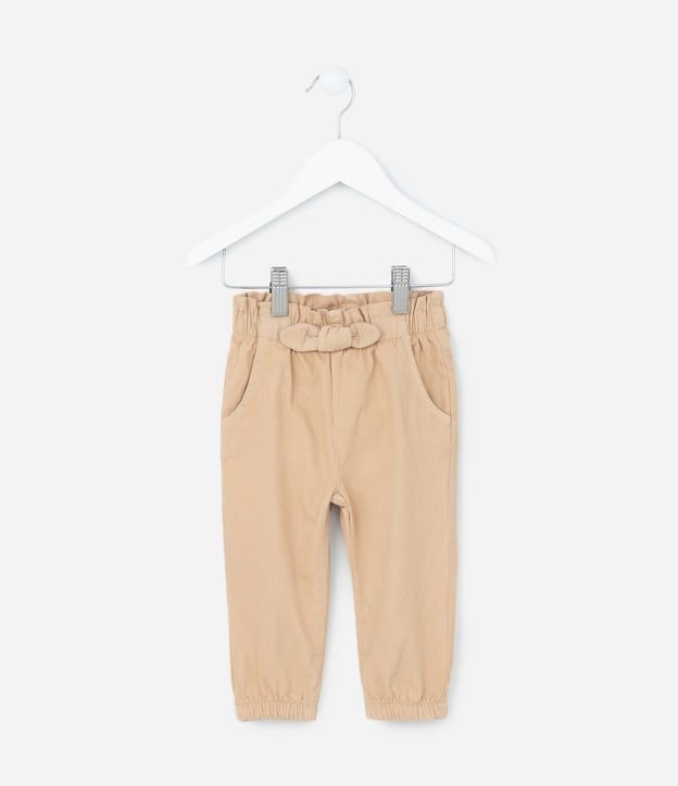 Calça Infantil em Veludo com Lacinho na Cintura - Tam 3 a 18 meses Bege