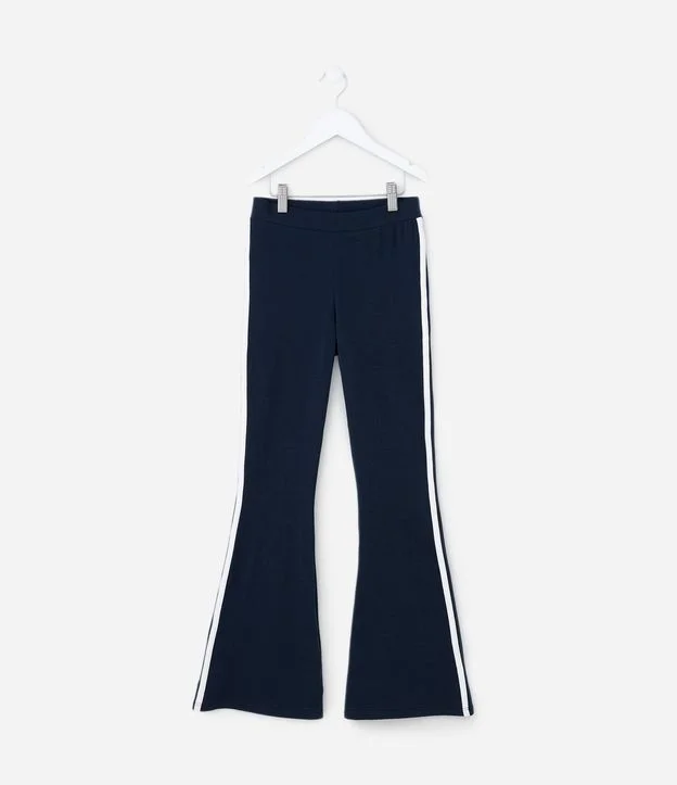 Calça Infantil Flare em Cotton com Listras Laterais – Tam 7 a 16 Anos Azul Marinho