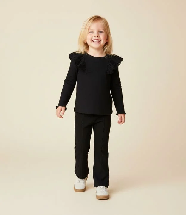 • Calça Infantil Flare em Ribana com Recortes – Tam 1 a 5/6 Preto 1