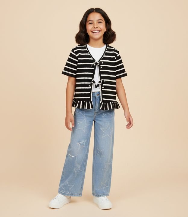 Calça Infantil Jeans Wide Leg com Estrelas - Tam 5 a 16 Anos
