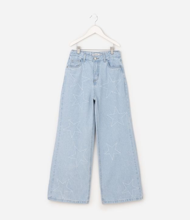 Calça Infantil Jeans Wide Leg com Estrelas - Tam 5 a 16 Anos Azul