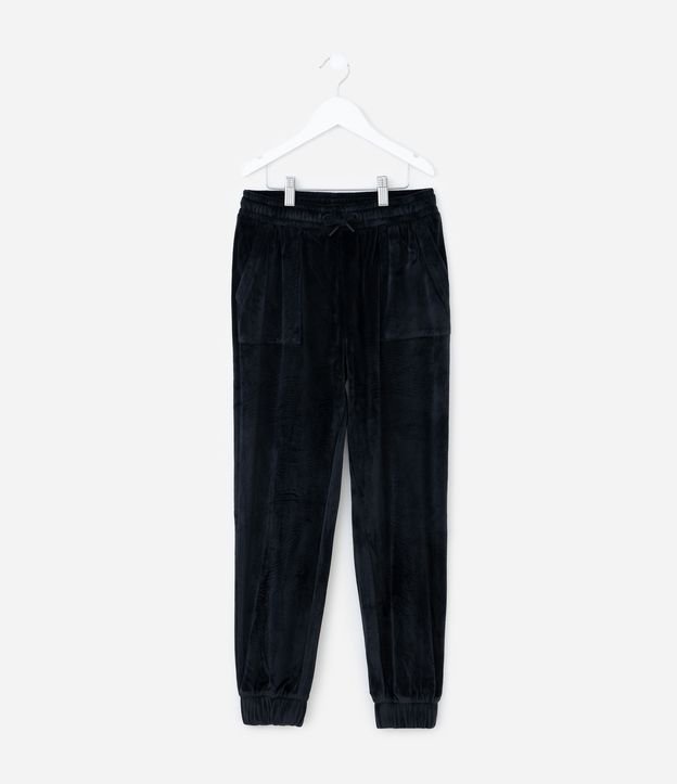 Calça infantil modelo jogger confeccionada em plush macio, com toque aveludado e caimento confortável. Possui cós elástico com cordão funcional para ajuste, bolsos frontais e punhos na barra, garantindo praticidade e liberdade de movimentos no dia a dia.