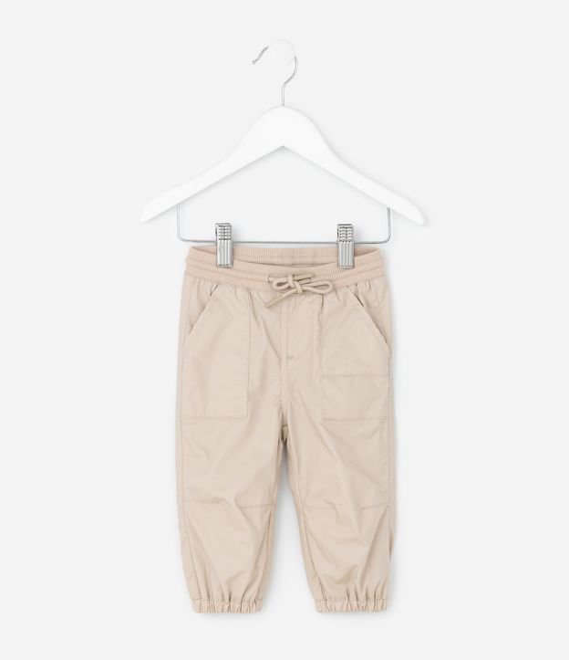 Calça Infantil Paper Touch com Bolsos – Tam RN a 18 Meses Bege