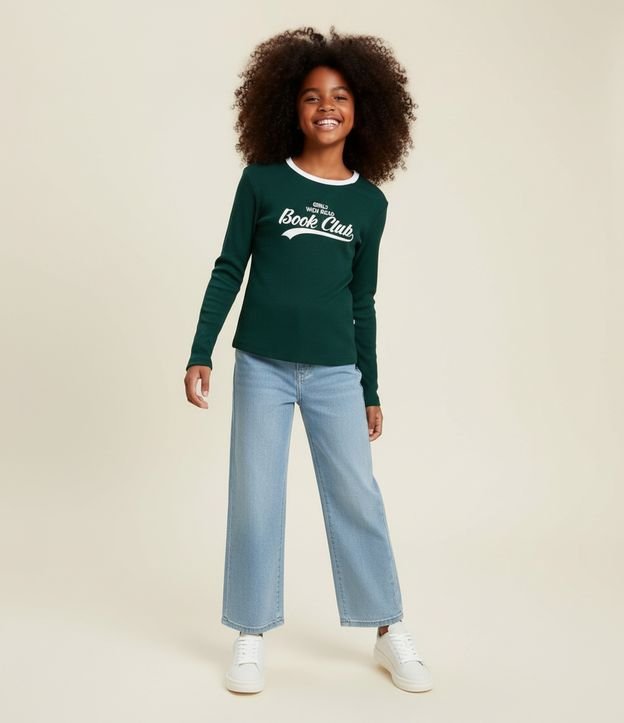 Calça Infantil Reta em Jeans com Estampa Listrada - Tam 5 a 14 Anos