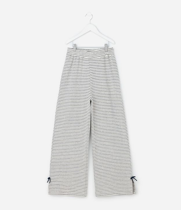 Calça Infantil Reta em Moletinho com Listras e Laço Texturizada - TAm 7 a 14 Anos Branco/Preto