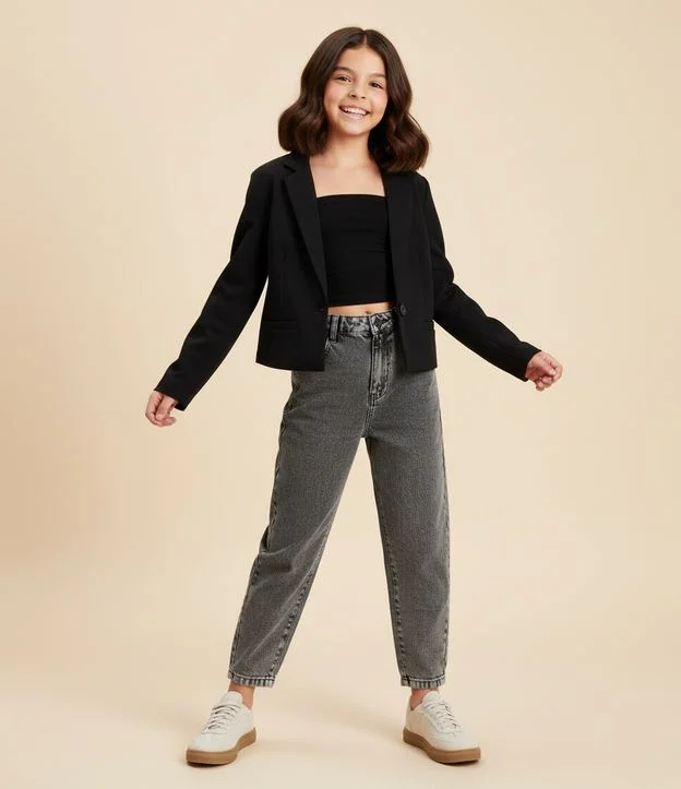 Calça Infantil Slouchy em Jeans com Correntinha de Estrelas – Tam 7 a 16 Anos Cinza