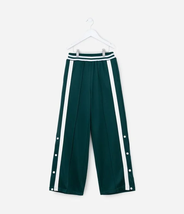 Calça Infantil Wide com Listras e Abertura Lateral – Tam 5 a 14 Anos Verde