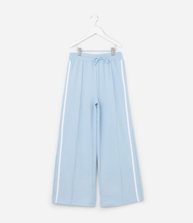 Calça Infantil Wide Leg com Listra Lateral - Tam 5 a 14 Anos Azul