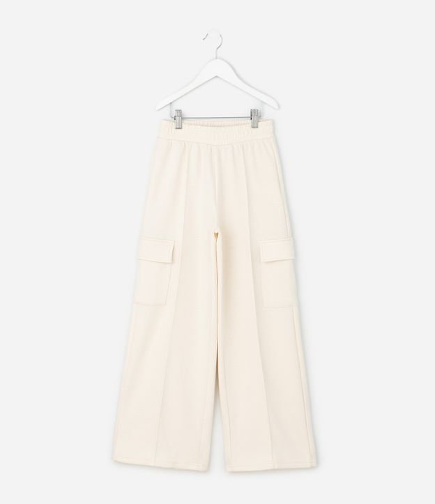 Calça Infantil Wide Leg em Moletom com Bolsos Cargo – Tam 5 a 16 Anos Off White
