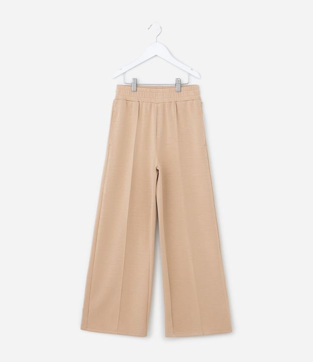 Calça Infantil Wide Leg Em Moletom Liso Sem Felpa - Tam 5 A 14 Anos Bege