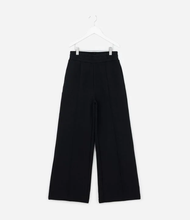 Calça Infantil Wide Leg Em Moletom Liso Sem Felpa - Tam 5 A 14 Anos Preto